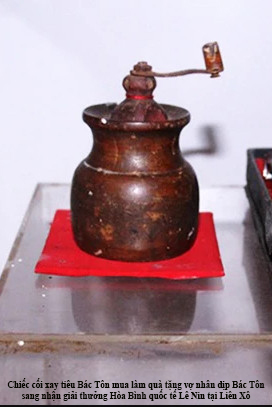 Bác sĩ Nghiệp vội chạy ra Cửa hàng bách hóa tổng hợp Mátxcơva tìm một cái cối xay tiêu quay tay bằng gỗ rất đẹp, nhưng chỉ hết có 7 rúp. Số tiền còn lại, Bác Tôn đã giao trả lại tất cảcho Chính phủ Liên Xô. Thế là chiếc cối xay tiêu đã trở thành kỷ vật của ngày hôm nay trong hoàn cảnh ấm áp nghĩa tình như thế.