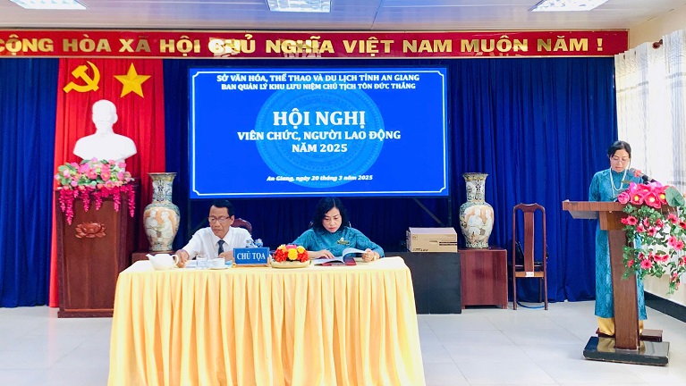 Hội nghị đã thông qua báo cáo kết quả hoạt động năm 2024 và đề ra phương hướng, nhiệm vụ trong năm 2025. Trong năm 2025, tập thể lãnh đạo và cán bộ viên chức, người lao động của Khu lưu niệm Chủ tịch Tôn Đức Thắng tiếp tục đoàn kết, chung lòng, nỗ lực vượt qua những khó khăn, hạn chế, tập trung triển khai tổ chức có hiệu quả các hoạt động chuyên môn nghiệp vụ, hoàn thành tốt các hoạt động phục vụ nhiệm vụ chính trị được giao của đơn vị.