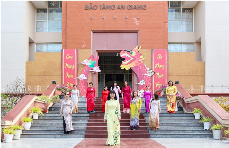 Chào mừng kỷ niệm 114 năm ngày Quốc tế Phụ nữ 8/3, 1984 năm khởi nghĩa Hai Bà Trưng và ngày Quốc tế Hạnh phúc 20/3, Bảo tàng tỉnh An Giang phát động toàn thể đoàn viên nữ, viên chức, người lao động mặc Áo dài trong “Tuần lễ Áo dài”, từ ngày 05/3 – 08/3/2024.