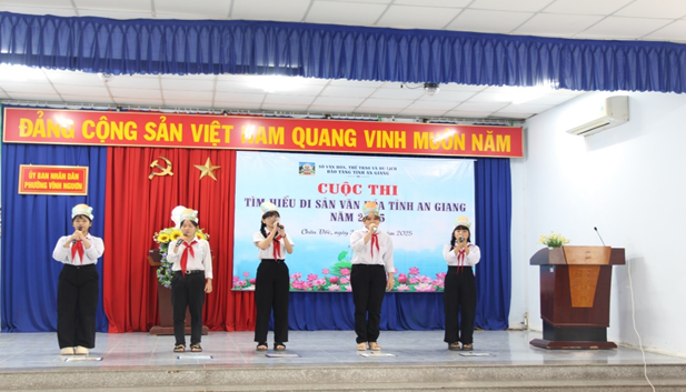 Thực hiện Kế hoạch số 104/KH-BT, ngày 13/5/2025 của Bảo tàng tỉnh An Giang về tổ chức cuộc thi tìm hiểu Di sản văn hóa tỉnh An Giang. Ngày 23/5/2025, Bảo tàng tỉnh phối hợp với Trường Trung học cơ sở Vĩnh Nguơn, phường Vĩnh Nguơn, thành phố Châu Đốc tổ chức cuộc thi tìm hiểu Di sản văn hóa tỉnh An Giang năm 2025 cho các em học sinh. Đến tham dự có Ban Giám đốc Bảo tàng tỉnh An Giang, đại diện lãnh đạo Phòng Văn hóa, Khoa học và Thông tin, Phòng Giáo dục và Đào tạo thành phố Châu Đốc, Ủy ban nhân dân phường Vĩnh Nguơn, Ban Giám hiệu và các thầy cô giáo Trường Trung học cơ sở Vĩnh Nguơn, viên chức Bảo tàng tỉnh.