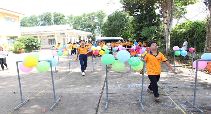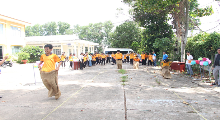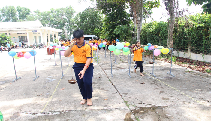 Góp phần tạo không khí sinh động, sôi nổi cho cuộc thi là các tiết mục văn nghệ, các trò chơi vận động như đổ nước vào chai, chuyền chanh, nhảy bao bố đã thu hút đông đảo các em tham gia với tinh thần nhiệt huyết.