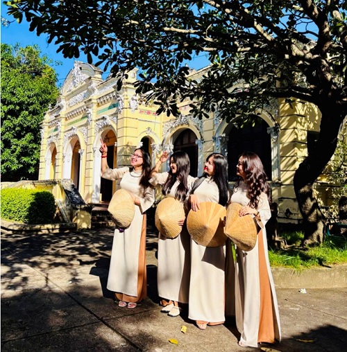 Gần Tết, hình ảnh các bạn trẻ trong tà áo dài truyền thống, tay cầm nón lá, quạt giấy hay cành hoa xuân, thướt tha bên thềm Bảo tàng tỉnh đã trở nên quen thuộc. Mỗi góc nhỏ nơi đây đều gợi nhắc ký ức xưa, giúp người xem cảm nhận rõ nét sự giao thoa giữa quá khứ và hiện tại.