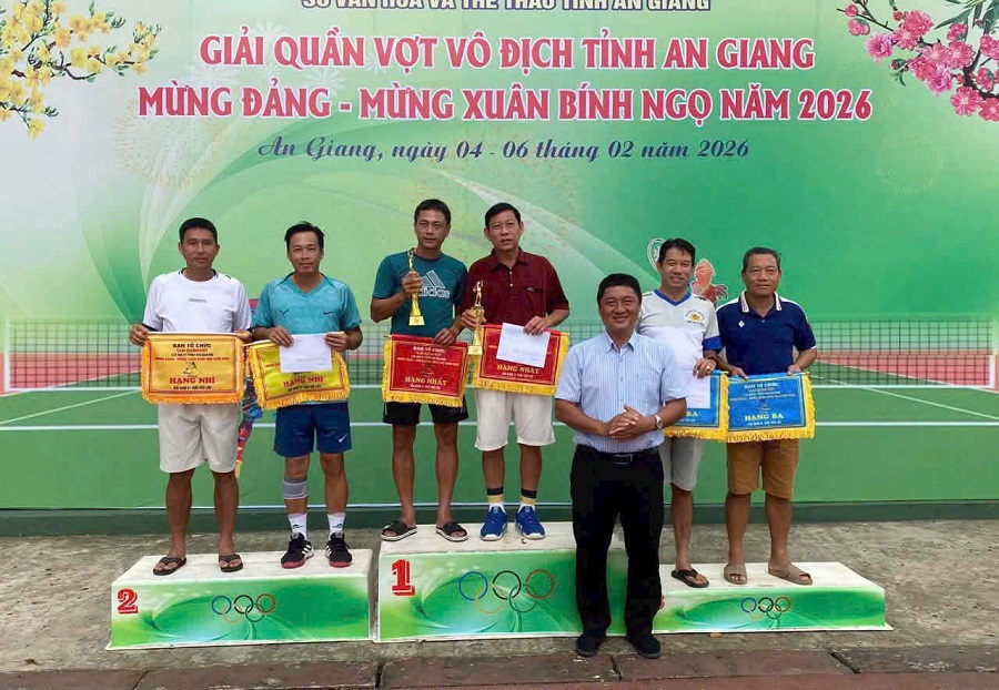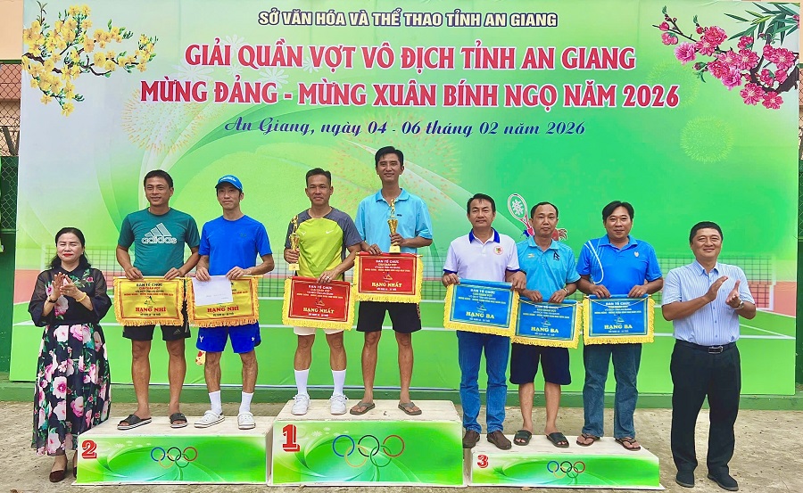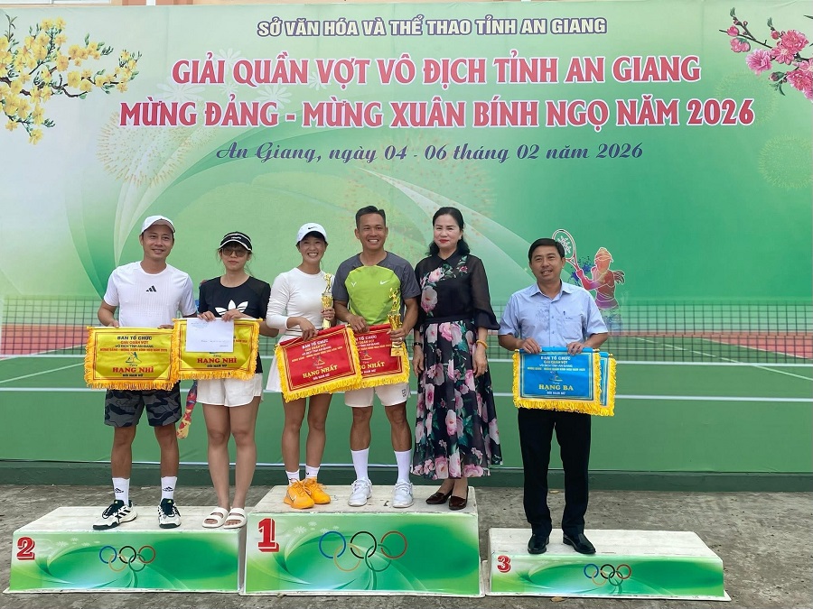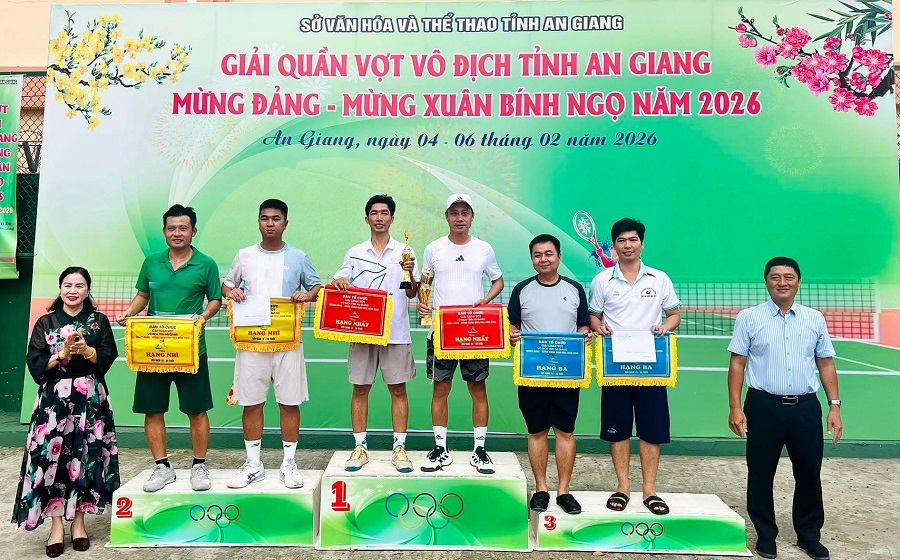 Giải quần vợt vô địch tỉnh An Giang mừng Đảng – mừng Xuân Bính Ngọ năm 2026 khép lại thành công, góp phần thúc đẩy phong trào tập luyện và thi đấu quần vợt, tăng cường giao lưu, đoàn kết giữa các đơn vị, địa phương, tạo không khí vui tươi, phấn khởi trong những ngày đầu Xuân mới trên địa bàn tỉnh An Giang.