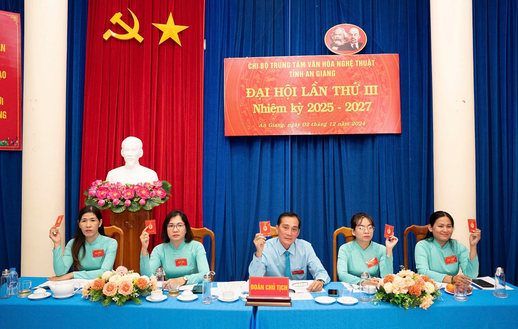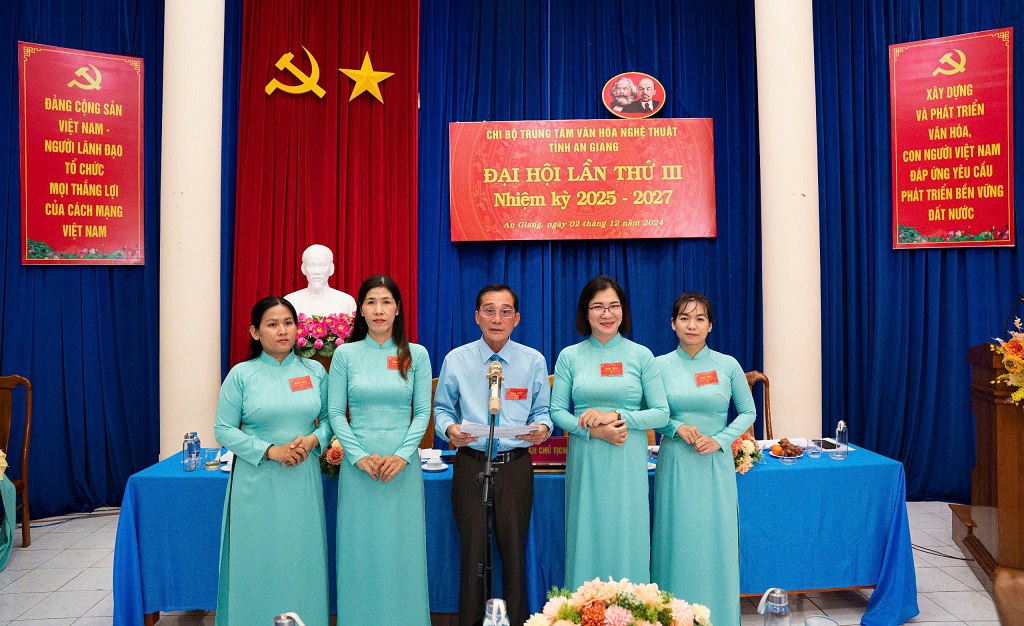 Kết thúc Đại hội, với tinh thần dân chủ, tập trung, các đại biểu tham dự đại hội đã bầu Chi ủy Chi bộ, chức danh Bí thư, Phó Bí thư Chi bộ nhiệm kỳ 2025-2027. Theo đó, đồng chí Nguyễn Văn Đông, Giám đốc Trung tâm Văn hoá Nghệ thuật được tín nhiệm giữ chức vụ Bí thư chi bộ, đồng chí Nguyễn Thị Yên, Phó Giám đốc Trung tâm Văn hoá Nghệ thuật giữ chức Phó Bí thư Chi bộ và 03 Chi ủy viên gồm các đồng chí Nguyễn Thị Ngọc Quyên, Trưởng phòng Hành chánh Tổng hợp, đồng chí Đào Thị Cẩm Lai, Trưởng phòng Nghiệp vụ VHNT và bà Đặng Thị Ngọc Tư, Trưởng đoàn Nghệ thuật và Tuyên truyền lưu động.