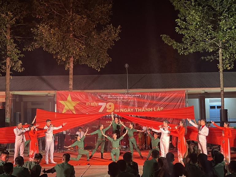 Nhằm thiết thực chào mừng kỷ niệm 79 năm Ngày thành lập Quân đội Nhân dân Việt Nam (22/12/1944 – 22/12/2023), từ ngày 03/12 đến ngày 22/12/2023, Trung tâm Văn hóa Nghệ thuật tỉnh triển khai thực hiện chương trình văn nghệ tuyên truyền, phối hợp chiếu phim lưu động phục vụ lực lượng vũ trang và nhân dân trên địa bàn tỉnh An Giang.
