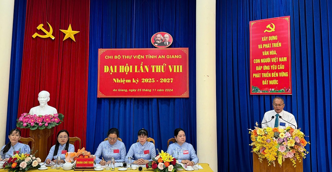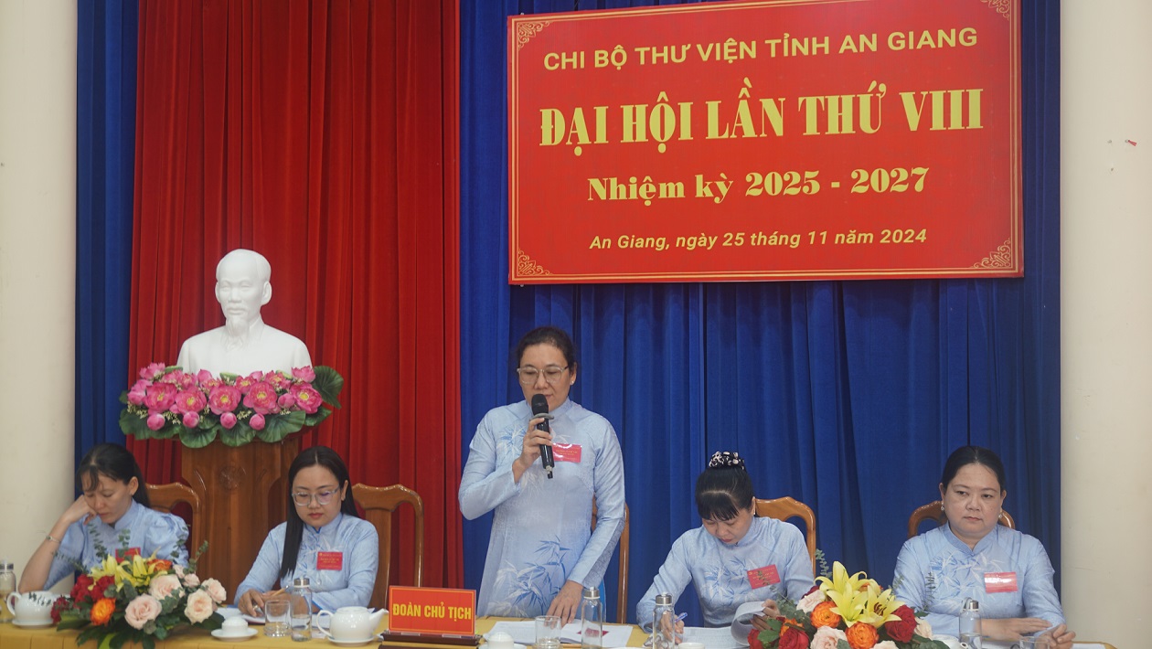 Chiều ngày 25/11/2024, tại Hội trường Sở Văn hóa, Thể thao và Du lịch, Chi bộ Thư viện tỉnh An Giang long trọng tổ chức Đại hội lần thứ VIII, nhiệm kỳ 2025 – 2027. Đây là chi bộ được Đảng bộ Sở Văn hóa, Thể thao và Du lịch lựa chọn là Đại hội điểm đểrút kinh nghiệm cho các chi bộ trực thuộc.