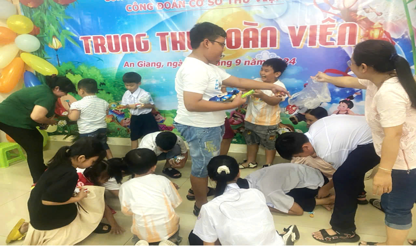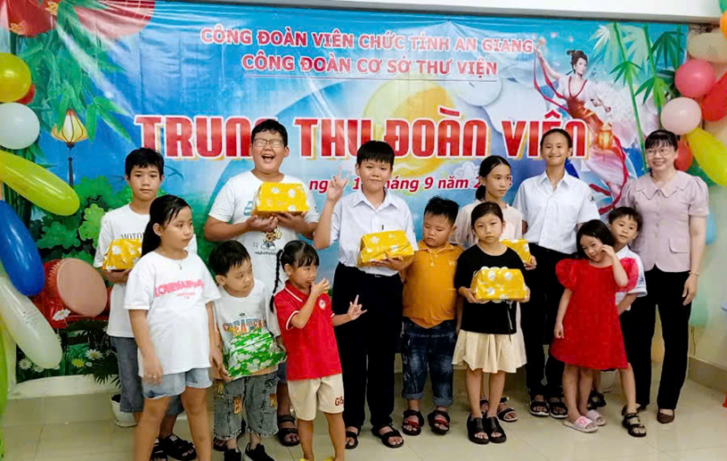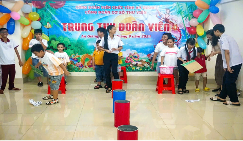 Đến với đêm hội trăng rằm năm nay, CĐCS Thư viện tặng 28 phần quà cho các cháu thiếu nhi là con đoàn viên, viên chức và người lao động trong đơn vị. Ngoài ra, các em thiếu nhi còn được tham gia Chương trình đêm hội trăng rằm với các tiết mục văn nghệ do chính các em là những diễn viên biểu diễn và tham gia các trò chơi vô cùng ấn tượng như: Đưa thỏ về cung trăng; Mang quà về đích; Tìm nguyên liệu làm bánh trung thu,…
