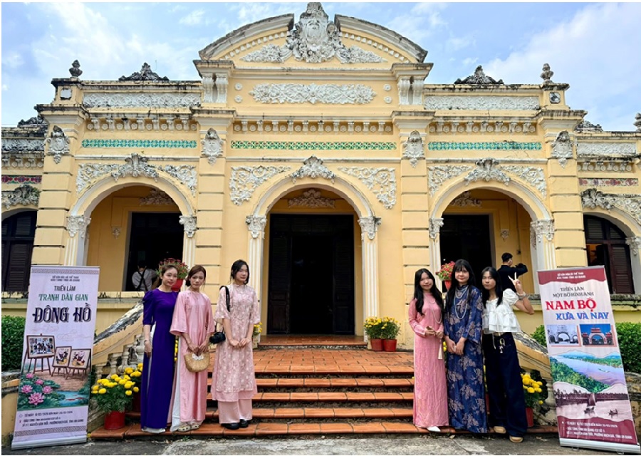 Các bạn trẻ đến tham quan trưng bày tranh dân gian Đông Hồ, triển lãm ảnh chuyên đề “Nam bộ xưa và nay” tại cơ sở 1 trong dịp Tết Nguyên đán.