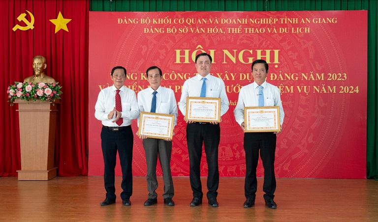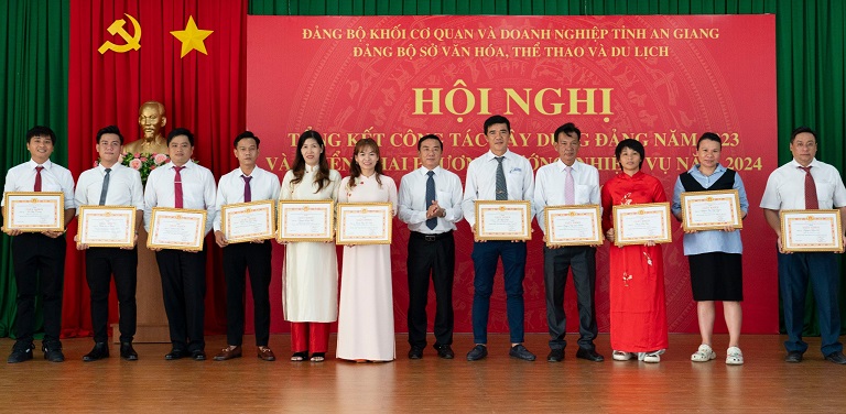 Tại Hội nghị tổng kết, Đảng ủy Sở Văn hóa, Thể thao và Du lịch đã thông qua các Quyết định khen thưởng và trao tặng Giấy khen cho 02 tổ chức đảng trực thuộc và 37 đảng viên “Hoàn thành xuất sắc nhiệm vụ” năm 2023.