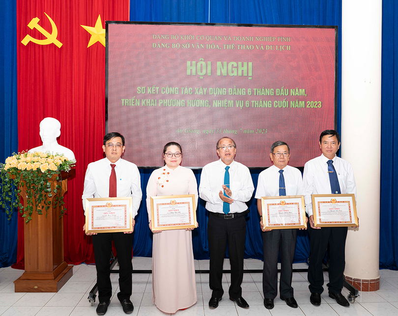 Dịp này, Ban Thường vụ Đảng ủy Khối Cơ quan và Doanh nghiệp tỉnh An Giang tặng Giấy khen cho các tập thể, cá nhân có thành tích xuất sắc trong thực hiện Chỉ thị 05-CT/TW của Bộ Chính trị về “Đẩy mạnh học tập và làm theo tư tưởng, đạo đức, phong cách Hồ Chí Minh” năm 2023 và đảng viên hoàn thành xuất sắc nhiệm vụ 5 năm liền 2018-2022.