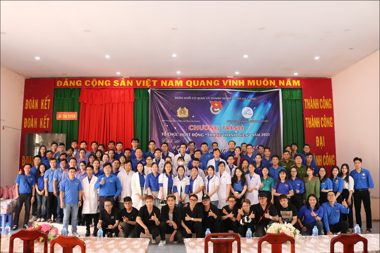 Nhằm thiết thực triển khai Chương trình công tác Đoàn và phong trào thanh niên năm 2025, Đoàn cơ sở Sở Văn hóa, Thể thao và Du lịch tỉnh An Giang đã chủ trì phối hợp với Ban Thanh niên Công an tỉnh An Giang cùng với hơn 30 đơn vị đoàn trực thuộc các sở, ngành, doanh nghiệp trên địa bàn tỉnh tổ chức chuỗi hoạt động ý nghĩa tại xã Tân Tuyến, huyện Tri Tôn – một địa bàn còn nhiều khó khăn của tỉnh.