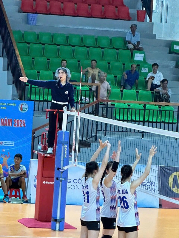Trọng tài Bóng chuyền trong nhà làm nhiệm vụ.