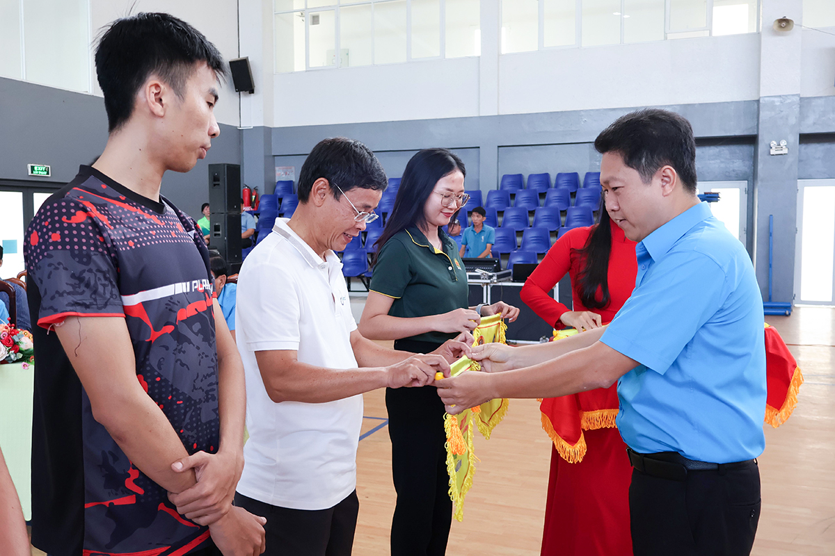 Ban Tổ chức trao cờ lưu niệm cho đại diện các đơn vị