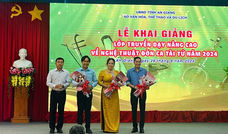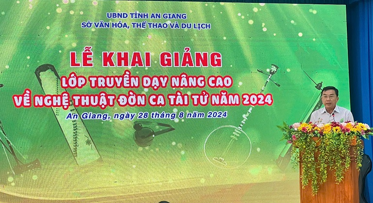 Sáng ngày 28/8/2024, tại Thư viện tỉnh, Sở Văn hóa, Thể thao và Du lịch đã tổ chức lễ Khai giảng Lớp truyền dạy nâng cao về Nghệ thuật Đờn ca tài tử năm 2024. Đến dự buổi lễ Khai giảng có ông Đào Sĩ Tuấn – Phó Giám đốc Sở Văn hóa, Thể thao và Du lịch, trưởng, phó các phòng/đơn vị trực thuộc Sở, các giảng viên và học viên.