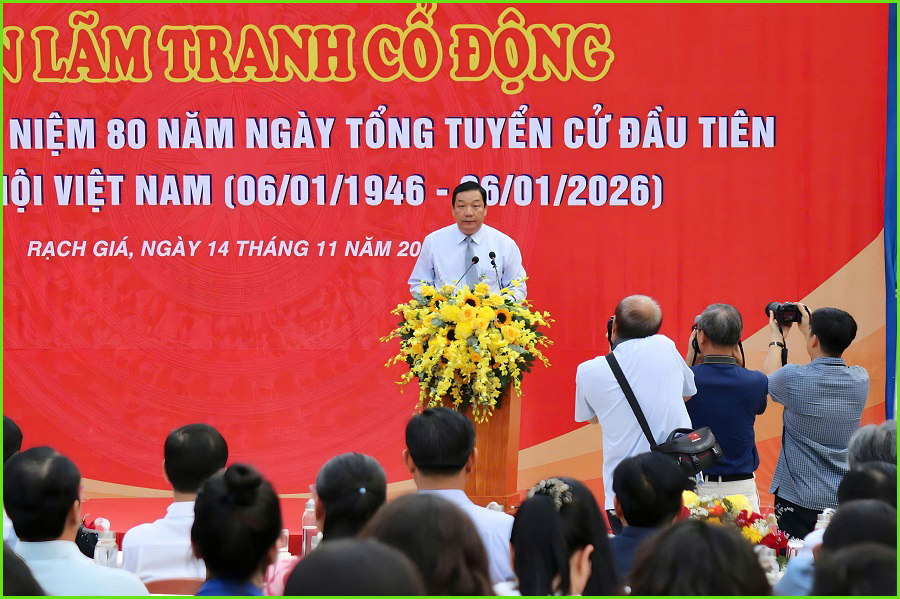 Chiều 14/11, tại Công viên Tượng đài Anh hùng dân tộc Nguyễn Trung Trực, phường Rạch Giá, tỉnh An Giang, diễn ra Lễ Khai mạc Triển lãm tranh cổ động tấm lớn tuyên truyền kỷ niệm 80 năm Ngày Tổng tuyển cử đầu tiên bầu Quốc hội Việt Nam (06/01/1946 – 06/01/2026).