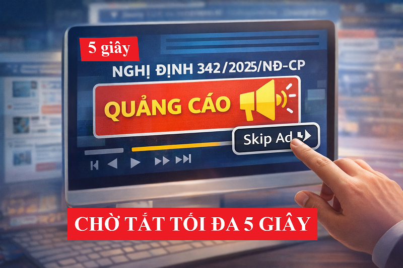 Chính phủ vừa ban hành Nghị định số 342/2025/NĐ-CP ngày 26/12/2025 quy định chi tiết một số điều của Luật Quảng cáo, trong đó đáng chú ý là quy định mới về quảng cáo trên môi trường mạng, yêu cầu quảng cáo trực tuyến chỉ được chờ tắt tối đa 5 giây, bảo đảm quyền chủ động của người sử dụng.