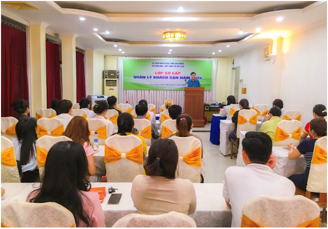 Chiều ngày 8 tháng 7 năm 2024, Sở Văn hóa, Thể thao và Du lịch phối hợp Trường Cao đẳng Du lịch Sài Gòn tổ chức lớp sơ cấp Quản lý Khách sạn tại thành phố Long Xuyên, lớp sơ cấp Quản lý Khách sạn diễn ra trong 15 ngày, từ ngày 8/7/2024 đến hết ngày 22/7/2024.