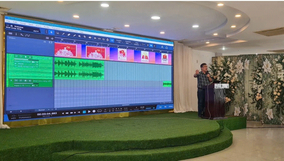 Lớp tập huấn diễn ra trong 3 ngày, từ ngày 08 đến ngày 10/05/2025. Nội dung lớp tập huấn nhằm bồi dưỡng kiến thức để ứng dụng AI trong âm nhạc phục vụ công tác tuyên truyền, văn hóa, văn nghệ tại các Trung tâm Văn hóa và Học tập cộng đồng (Trung tâm Văn hóa – Thể thao) các xã, phường, thị trấn thuộc tỉnh An Giang. Tại buổi tập huấn, các học viên được nghe giảng viên giới thiệu về các trang Website, các phần mềm AI; hướng dẫn sử dụng cơ bản các phần mềm. Các học viên được thực hành nhằm làm quen với giao diện phần mềm, thực hiện các thao tác như: tách nhạc và lời, ráp nối các đoạn nhạc, thu âm, sáng tạo nhạc dựa trên một chủ đề bất kỳ,...