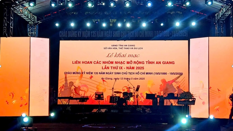 Chào mừng kỷ niệm 135 năm Ngày sinh Chủ tịch Hồ Chí Minh (19/5/1890 -19/5/2025), đồng thời thúc đẩy phong trào âm nhạc và tạo sân chơi giao lưu nghệ thuật cho các nhóm nhạc trẻ. Đêm 12/5 và 13/5/2025, Sở Văn hóa, Thể thao và Du lịch tỉnh An Giang đã tổ chức thành công Liên hoan các nhóm nhạc mở rộng tỉnh An Giang lần thứ IX - năm 2025.