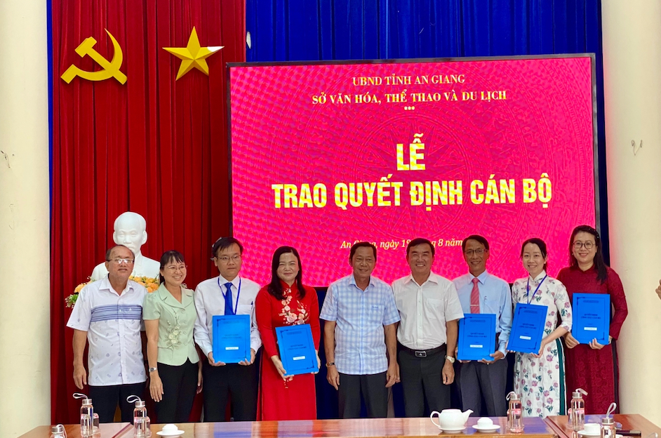 Chiều ngày 19/8/2024, Ban Thường vụ Đảng ủy, Ban Giám đốc Sở Văn hóa, Thể thao và Du lịch tỉnh An Giang đã tổ chức Lễ trao quyết định cho 05 cán bộ được điều động, bổ nhiệm giữ các chức danh lãnh đạo, quản lý các phòng, đơn vị sự nghiệp trựcthuộc Sở Văn hóa, Thể thao và Du lịch. Đồng chíNguyễn Khánh Hiệp - Tỉnh ủy viên, Bí thư Đảng ủy, Giám đốc Sở Văn hóa, Thể thao và Du lịch chủ trì buổi lễ.