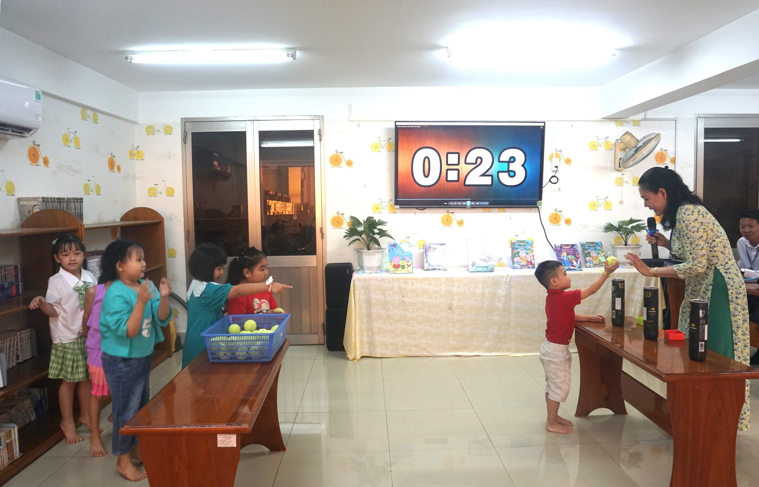 Tiếp theo đó là đoàn tham quan, trải nghiệm thu hút 130 bé ở độ tuổi mầm non, với một số các hoạt động vui chơi có nội dung “Đôi bàn tay kể chuyện”, “Tớ là ong chăm chỉ!”, “Tô màu nắng hạ”, “Vận động cùng Baby Shark”. Hoạt động đã diễn ra thu hút các bé qua cách kể chuyện bằng đôi tay. Nhóm trò chơi vận động thô với bóng và thử thách bé nhận diện, phân biệt màu sắc. Đặc biệt, nhóm trò chơi vận động tinh là những khung tranh do đôi tay khéo léo của các bạn nhỏ tự tạo nên những màu sắc vui nhộn. Sau hoạt động, các bạn được Thư viện tặng khung tranh về nhà làm kỷ niệm đầu tiên khi đến với Thư viện. Cuối buổi hoạt động các bé vận động thư giãn cùng nhịp điệu Baby Shark, với âm điệu quen thuộc và gần gũi mang đến sự kết nối và ấn tượng tốt đẹp ban đầu cho buổi sinh hoạt ngoại khóa.