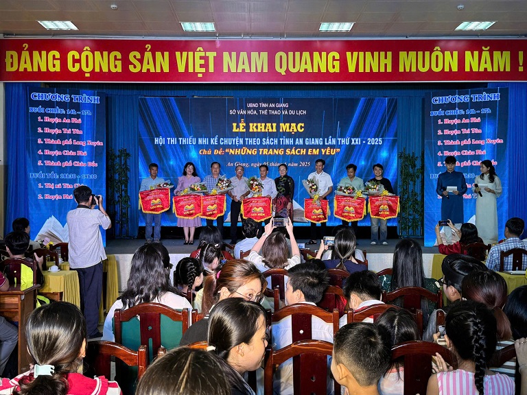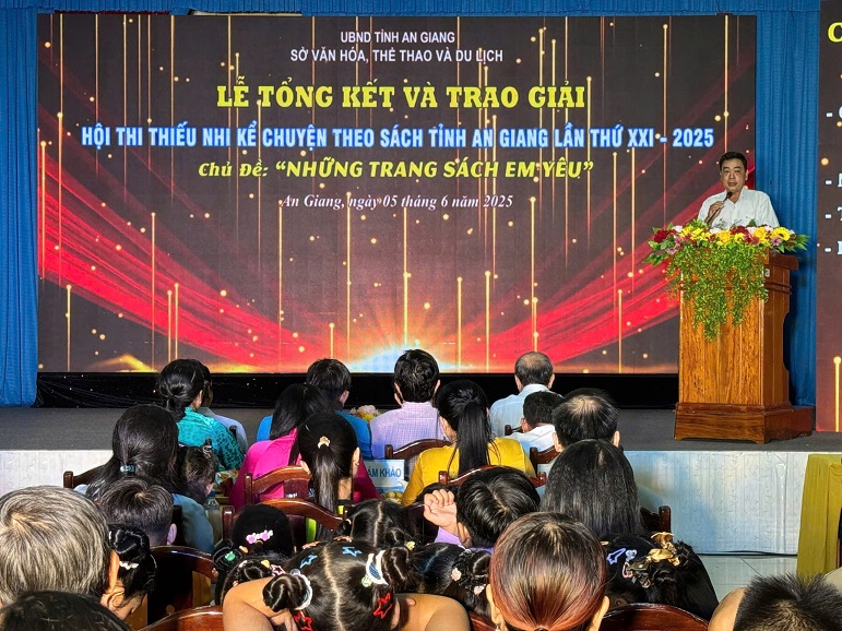Ngày 05/6/2025, tại Hội trường Thư viện tỉnh An Giang, đã diễn ra Hội thi “Thiếu nhi kể chuyện theo sách tỉnh An Giang lần thứ XXI – năm 2025”, với chủ đề “Những trang sách em yêu”. Đây là hoạt động ý nghĩa nhằm lan tỏa văn hóa đọc trong lứa tuổi thiếu nhi, tạo sân chơi bổ ích và lành mạnh cho các em trong dịp hè.
