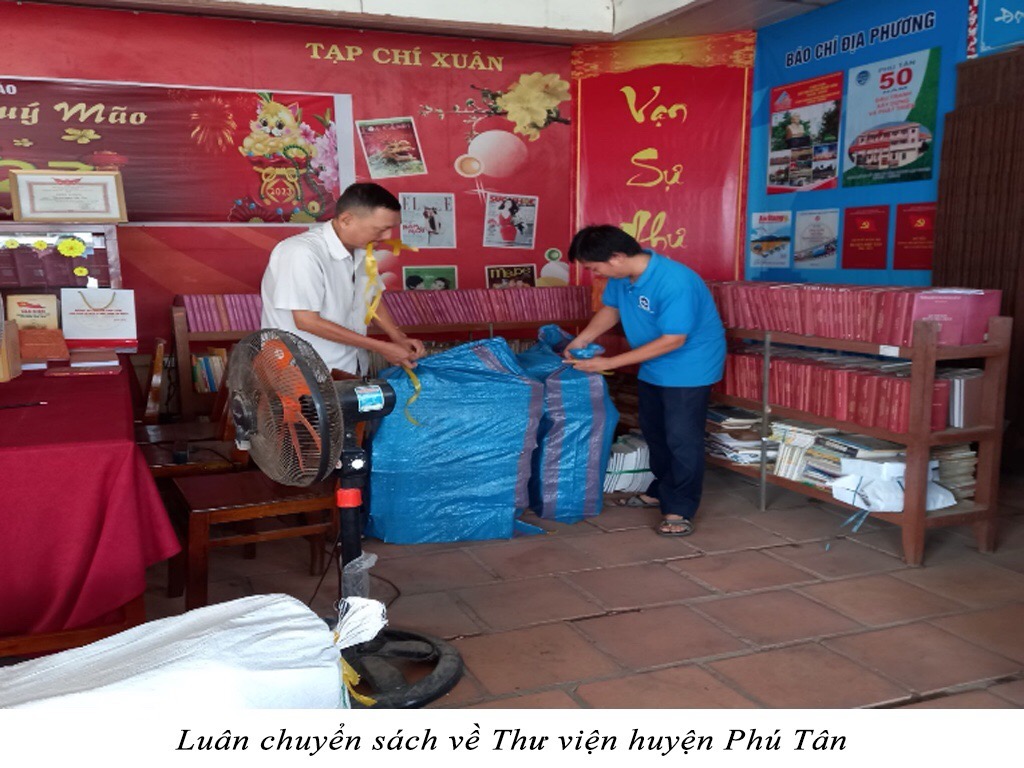 Hàng năm, Thư viện tỉnh chủ động xây dựng kế hoạch luân chuyển sách định kỳ 02 lần/năm phục vụ người dân ở địa phương thông qua 11 thư viện, bưu điệnhuyện, thị, thành phố. Đồng thời, còn luân chuyển sáchphục vụ các chiến sĩ Bộ đội Biên Phòng; các em học sinh và giáo viên đơn vị trường học; phạm nhân Trại giam Định Thành. Trong quá trình luân chuyển sách viên chức thư viện hướng dẫn cán bộ thư viện cơ sở về chuyên môn nghiệp vụ; sử dụng phẩn mềm OpenBiblio; thực hiện quy trình luân chuyển sách xuống các xã, phòng đọc sách, tủ sách cộng đồng; cũng như cách thức phục vụ bạn đọc và quản lí tài liệu.
