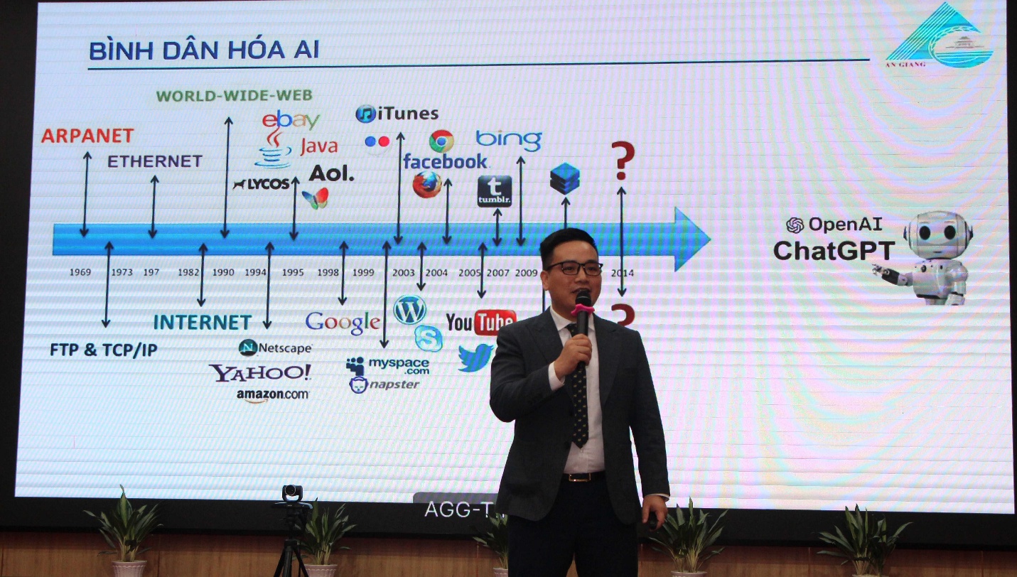 Chuyên gia, Thạc sĩ Nguyễn Văn Tiệp, Giám đốc Trung tâm ứng dụng AI lãnh đạo Minh Triết, Viện Kinh tế xanh hướng dẫn kỹ năng ứng dụng trí tuệ nhân tạo (AI) trong thực hiện nhiệm vụ chính trị