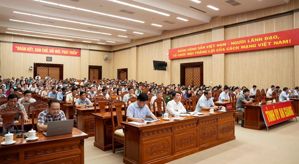 (Cổng TTĐT tỉnh AG)- Ngày 09/9, Văn phòng Trung ương Đảng tổ chức Hội nghị tập huấn ứng dụng trí tuệ nhân tạo (AI) cho cán bộ các Đảng ủy và cơ quan Đảng toàn quốc, bằng hình thức trực tiếp kết hợp trực tuyến được kết nối trực tuyến tới gần 4.000 điểm cầu ở Trung ương, cấp tỉnh và cấp xã trong cả nước. Ủy viên Ban Chấp hành Trung ương Đảng, Bí thư Tỉnh ủy An Giang Nguyễn Tiến Hải; Phó Bí thư Tỉnh ủy An Giang Lâm Minh Thành cùng các đồng chí Ủy viên Ban Thường vụ Tỉnh ủy dự tại điểm cầu Hội trường Tỉnh ủy An Giang.