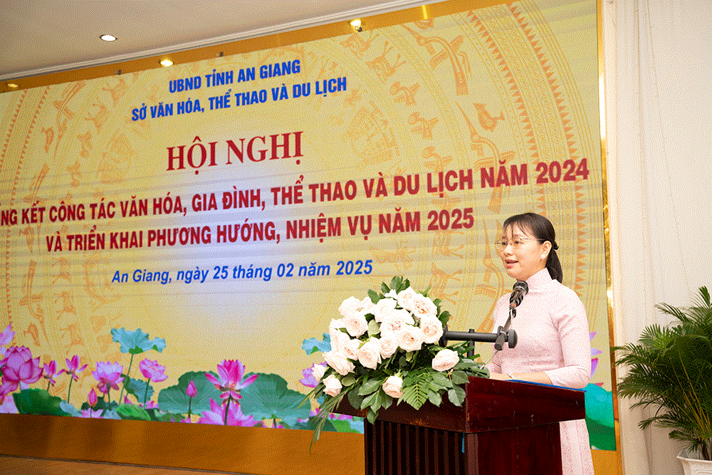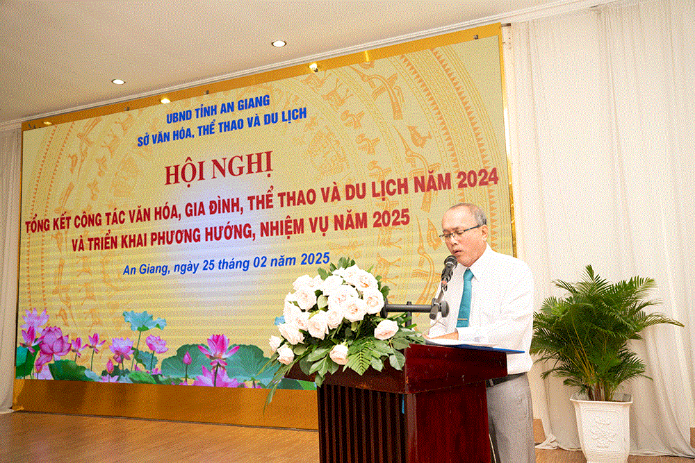 Phát biểu chỉ đạo hội nghị, Giám đốc Sở Văn hóa, Thể thao và Du lịch tỉnh An Giang Nguyễn Khánh Hiệp nhấn mạnh: Ngành văn hóa, gia đình, thể thao và du lịch tiếp tục phát huy những thành tựu đạt được và khắc phục những hạn chế, tồn tại trong năm 2024 và phấn đấu hoàn thành các nhiệm vụ chính trị và mục tiêu phát triển đã đề ra trong năm 2025, tạo tiền đề căn bản phấn đấu hoàn thành kế hoạch 5 năm 2021 - 2025, tích cực góp phần cùng với các ngành và địa phương hoàn thành mục tiêu phát triển kinh tế - xã hội của tỉnh.