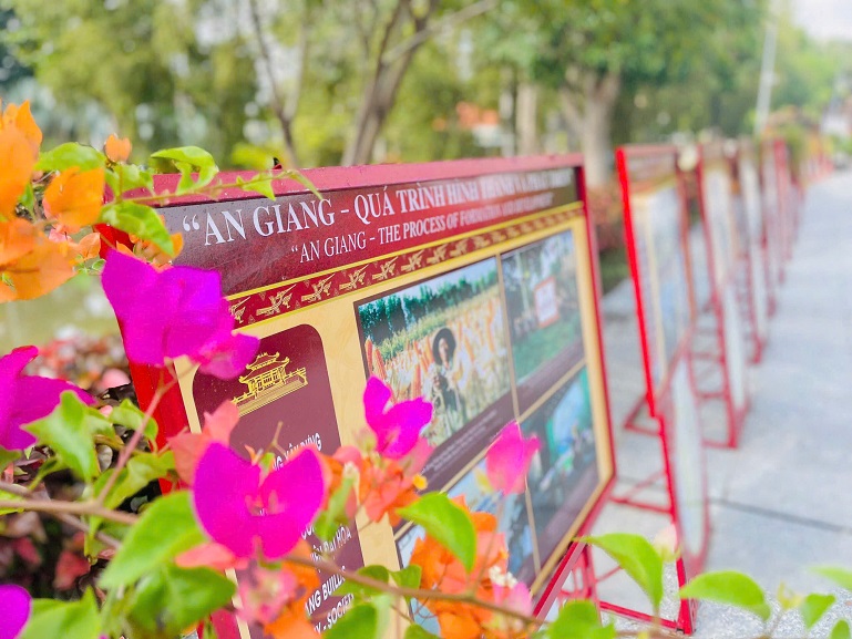 Với khoảng 120 hình ảnh, tư liệu lịch sử quý hiếm hiện đang được lưu giữ tại các trung tâm lưu trữ Quốc gia trực thuộc cục Văn thư và Lưu trữ Nhà nước – Bộ nội vụ, Bảo tàng An Giang, trung tâm Lưu trữ lịch sử An Giang. Triển lãm giúp cho người xem và khách tham quan có một cái nhìn tổng quát và được hiểu biết nhiều hơn về quá trình hình thành từ thuở khai hoang lập ấp, quá trình đấu tranh bảo vệ và xây dựng quê hương của quân và dân An Giang, những thành tựu đạt được về kinh tế - văn hóa – xã hội dưới sự lãnh đạo của Đảng bộ và chính quyền An Giang quá các thời kỳ lịch sử.