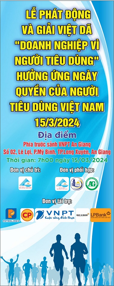 Sáng ngày 15/3/2024, Sở Văn hóa, Thể thao và Du lịch phối hợp cùng Sở Công Thương tỉnh An Giang, Hội Bảo vệ quyền lợi người tiêu dùng tỉnh và UBND TP. Long Xuyên tổ chức Lễ phát động và Giải việt dã “Doanh nghiệp vì người tiêu dùng” hưởng ứng Ngày quyền của người tiêu dùng Việt Nam năm 2024, chủ đề “Thông tin minh bạch – Tiêu dùng an toàn”.